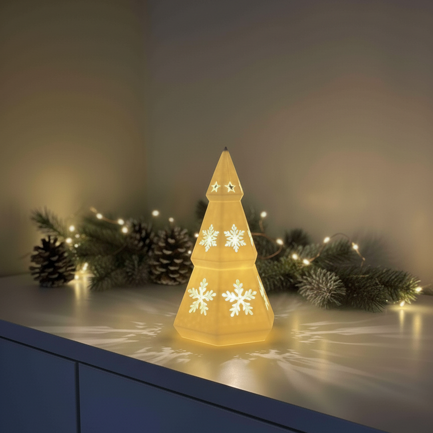 Med sitt rena formspråk och subtila ljus blir den en stämningsfull detalj i varje rum — perfekt för mörka kvällar och lugna stunder.